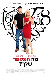 Whats Your Number בקומדיה הרומנטית הבועטת “מה המספר שלך” אלי (אנה פאריס) היא אישה שקוראת כתבה במגזין הטוענת שלנשים שיצאו עם יותר מ-20 גברים במהלך חייהן יש סיכוי טוב להישאר רווקות לעד. אחרי שהיא סופרת את הגברים בחייה, אלי מתחילה לאבד כל תקווה למצוא את האחד ולהינשא לו. כשהיא נשבעת לא לעבור את המספר 20, אלי מגייסת את עזרתו של השכן החתיך שלה (כריס אוונס) והופכת לאובססיבית בכל הקשור באיתור בני הזוג הקודמים שלה כדי להיות בטוחה שהיא לא פספסה את ה”אחד”