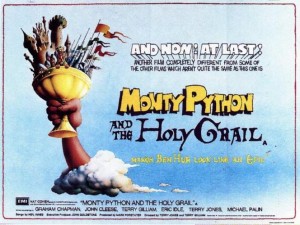המלך ארתור יוצא למסע לחפש אבירים מוכשרים שיעזרו לו במסעותיו. לאחר התגלות האל אליו הוא מוצא את יעודו בחיפוש אחר הגביע הקדוש. בדרך הוא והאבירים עוברים שלל הרפתקאות.מונטי פייטון – חבורת סטנדאפיסטים בריטית ישנה, מצחיקה בטרוף ומתבססת על שטויות מוחלטות